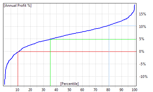 It helps finding out parameter combinations that produce best and most reliable results. 3D chart can be rotated, animated and watched from any angle. A water level can be adjusted to precisely determine peak and valleys above and under certain level