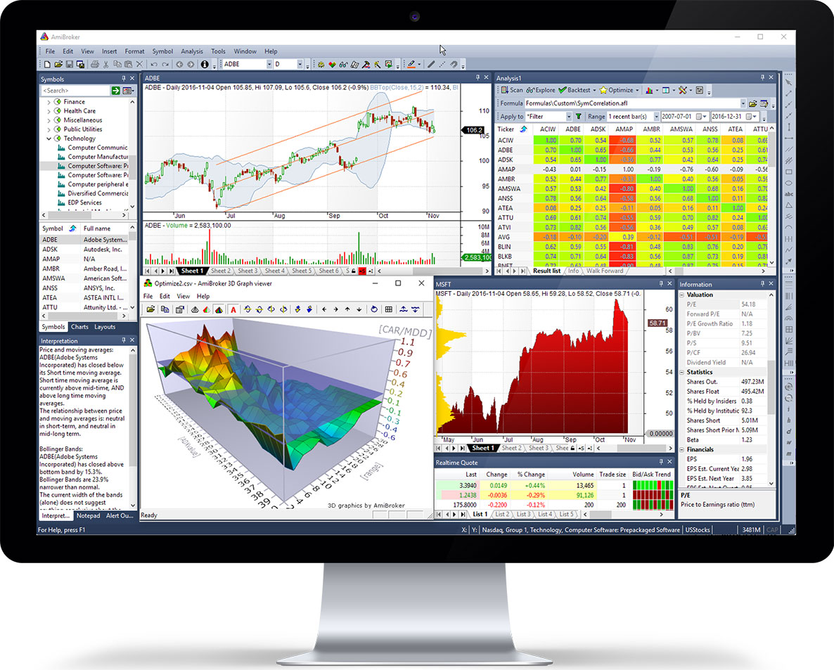 System requirements: Microsoft Windows 11, 10, 8.1, 7 (SP1) at least 1GB RAM. Apple Mac users can use Bootcamp / Parallels / VMWare to run AmiBroker.