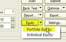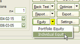To display portfolio-level equity chart is is enough to double click on "Equity" button in the Automatic Analysis window or click on the drop down arrow on the "Equity" button and choose "Portfolio Equity" from the menu AFTER running a backtest.