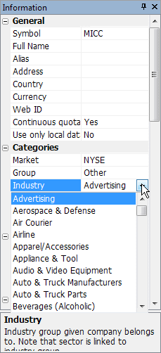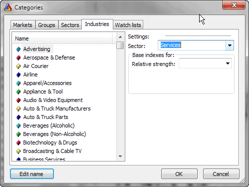 As described above symbol and industries names and relationship can be easily set up quickly using "broker.sectors" and "broker.industries" files. It will save some work needed otherwise to enter this information in Symbol->Categories window.