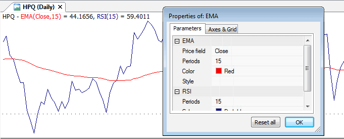 AmiBroker allows you to easily create and modify your indicators with few moves of a mouse. From now on you can build sophisticated indicators without any programming knowledge at all. The available (ready-to-use) indicators are listed in Charts tab of the Workspace window.