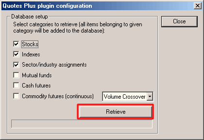 IMPORTANT: If there are new symbols added or old symbols deleted to/from the external data source, you will need to go to File->Database Settings->Configure and click "RETRIEVE" again to get new symbols.