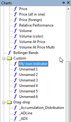 Now the indicator you have just written is displayed as a chart. You can also find it stored as a formula in Chart tree: