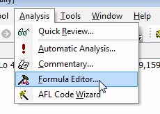 For further reference on using Formula Editor please consult Environment - Formula Editor and AmiBroker Formula Language - AFL Tools sections of AmiBroker User's guide and using AFL editor.