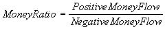 Now, to calculate the money flow ratio you need to separate the money flows for a period into positive and negative. If the price was up in a particular day this is considered to be "Positive Money Flow". If the price closed down it is considered to be "Negative Money Flow".
