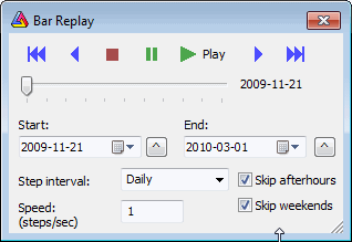 Skip afterhours - when turned on, playback skips hours outside regular trading hours as defined in File->Database Settings->Intraday Settings