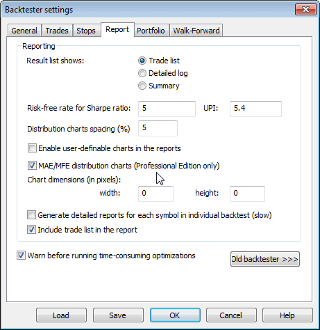 This window (accessible from Report button in Automatic analysis window) provides very useful information about the performance of a trading system under the test. The information included here can be customized using system test settings dialog.